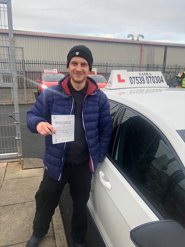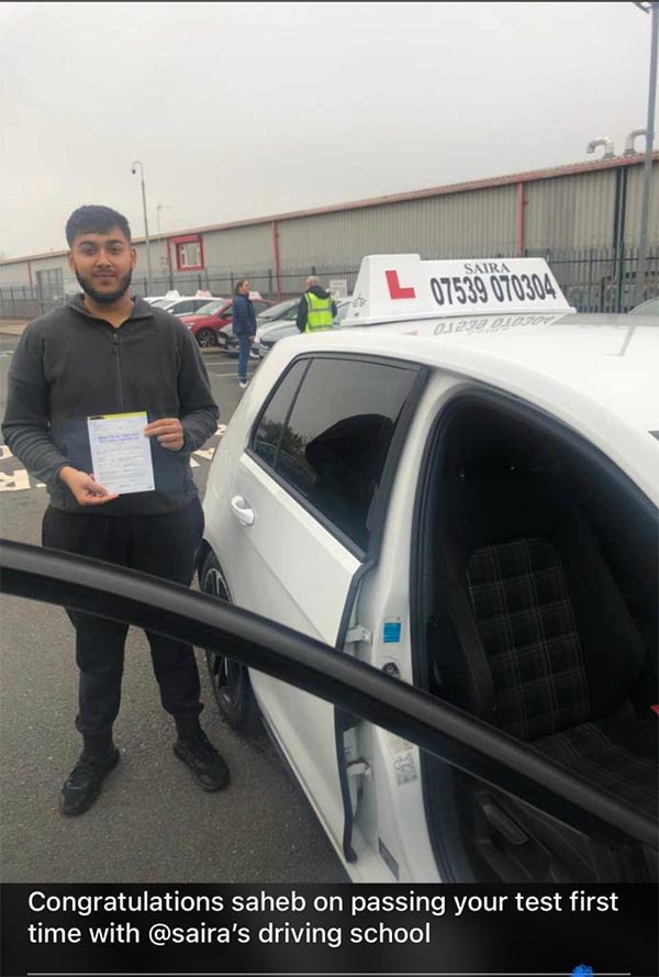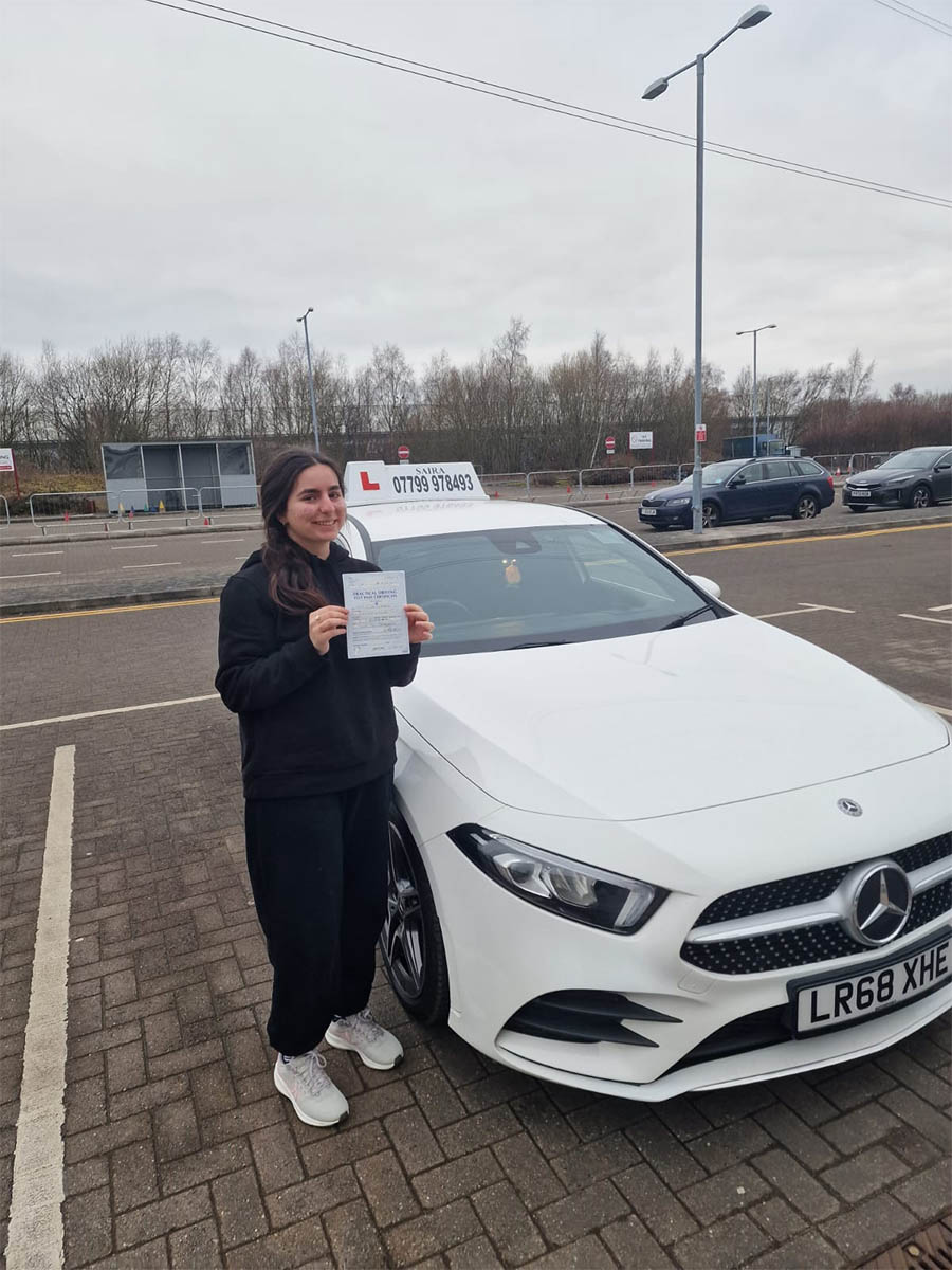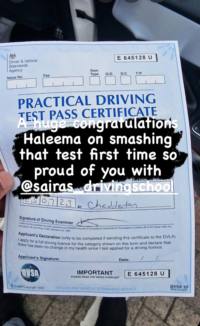 Thank you Saira. This wouldn't have happened without your lessons. Highly recommended driving school in Manchester.