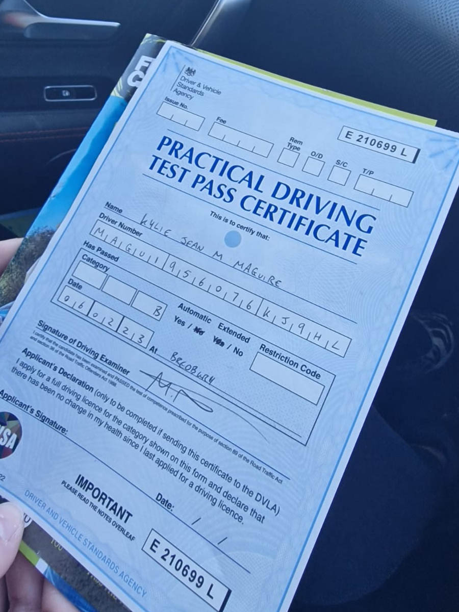 Thank you, Saira, I really appreciate you taking me on and teaching me in Bredbury. You've gave me so much confidence in my driving and you have helped me so much. I can't really stop thanking you a lot. I'm so happy I passed. You've always had your trust in me and I will always support you and always remember you. It's a shame I won't do lessons with you anymore sadly but I'll always keep you in my prayers and your family. I'll see you around.
