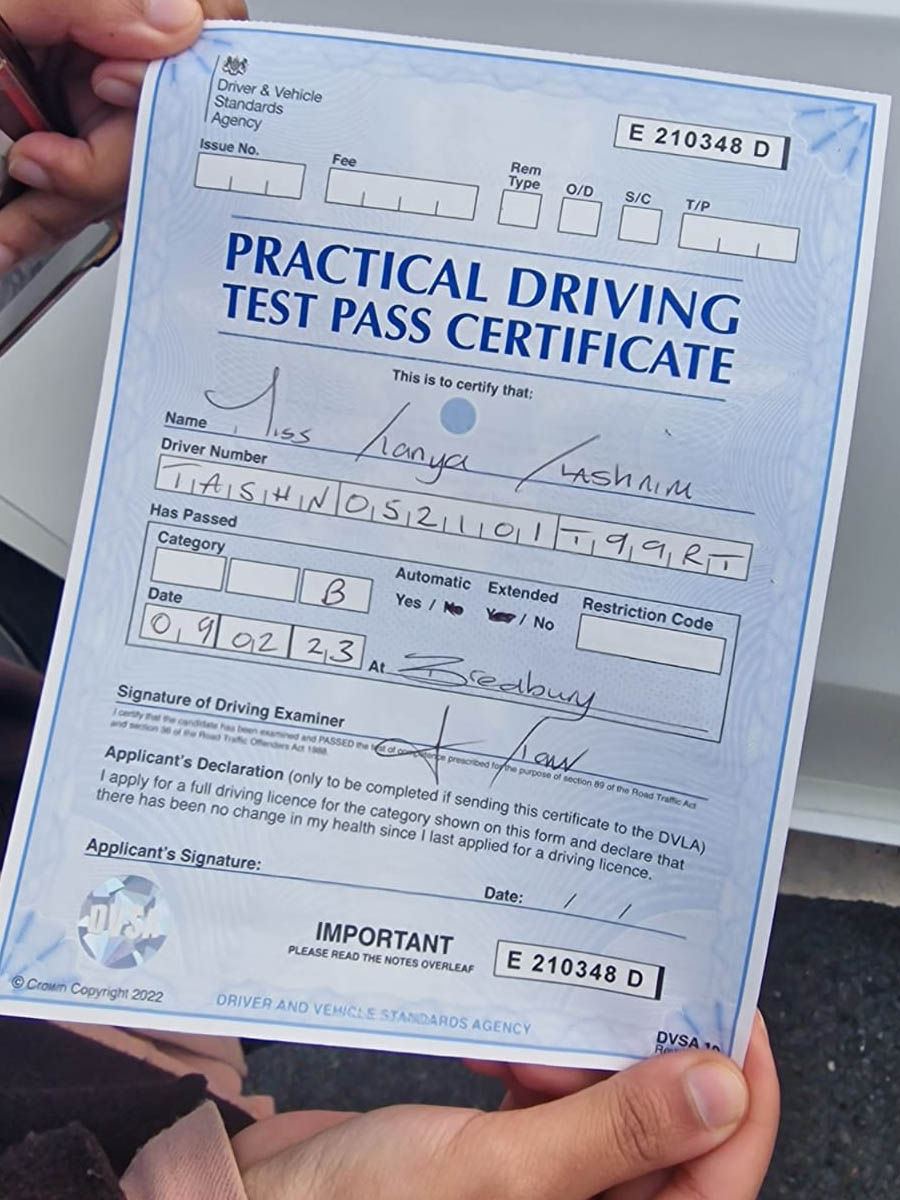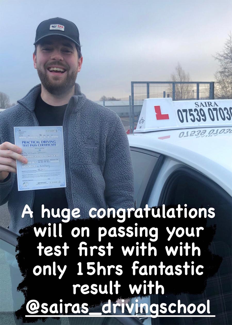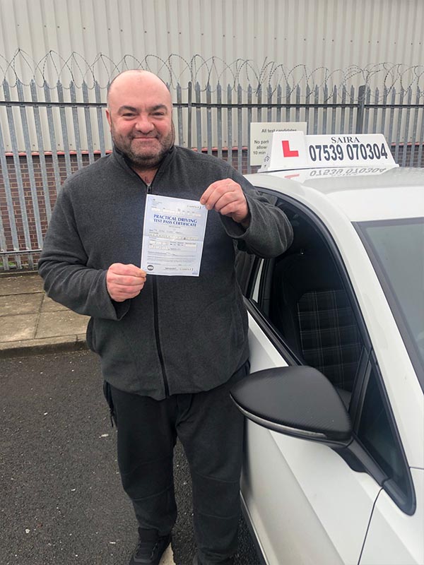 Thank you Saira. This wouldn't have happened without your lessons. Highly recommended driving school in Manchester.